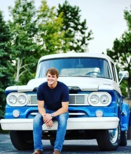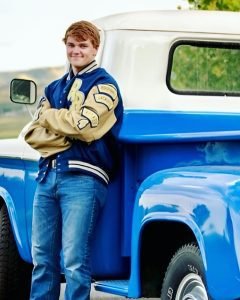 Blue eyes, mischief-filled crooked smile, and athletic build,|