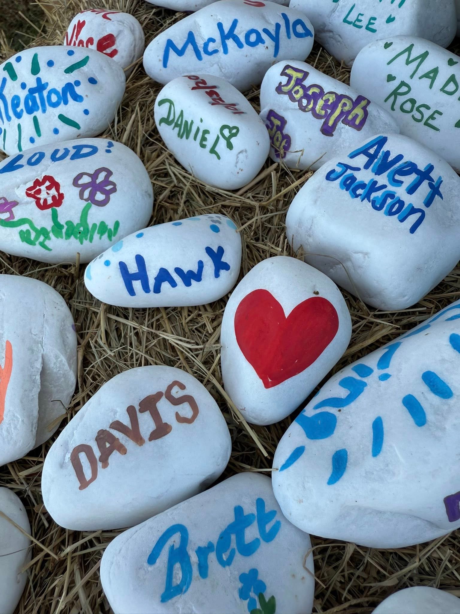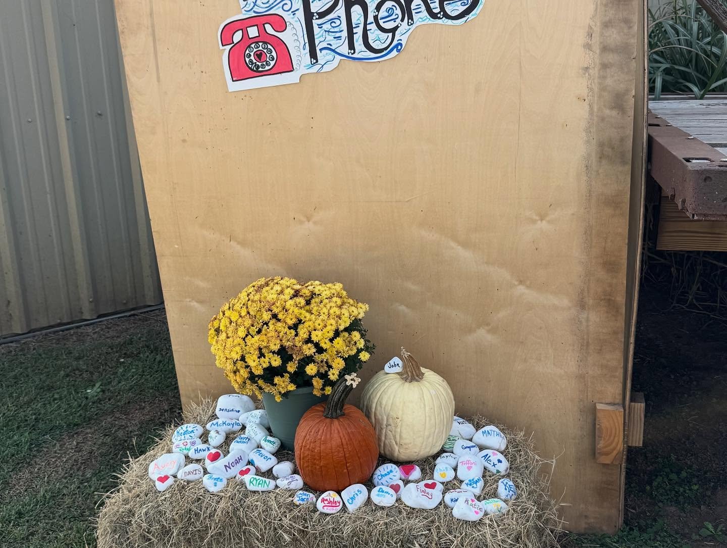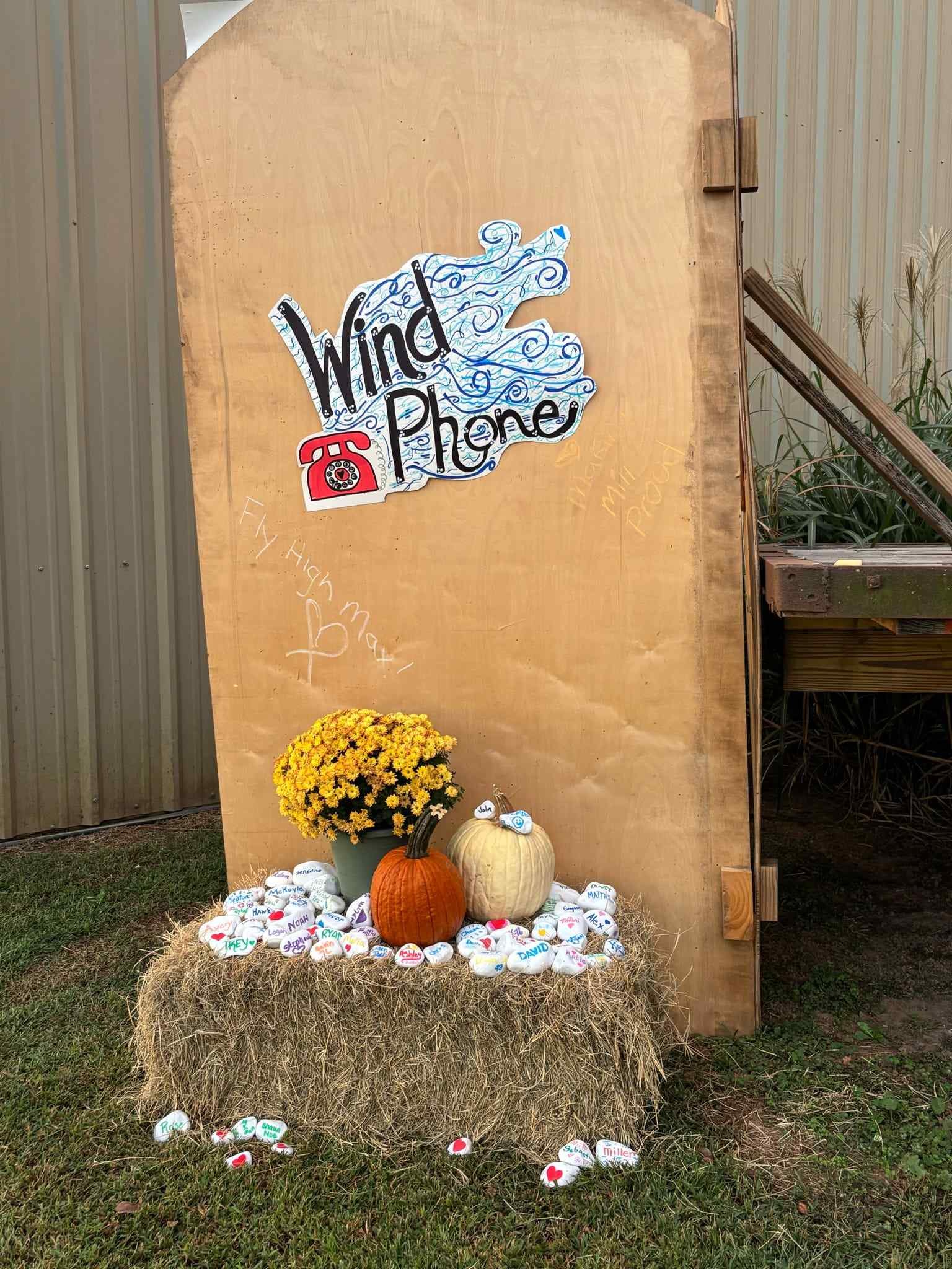 Each mom painted a rock with her child’s name on it and placed it outside the windphone as they were invited to call their loved one(s). As the message is spoken into the receiver, the wind takes the message to them wherever they are.