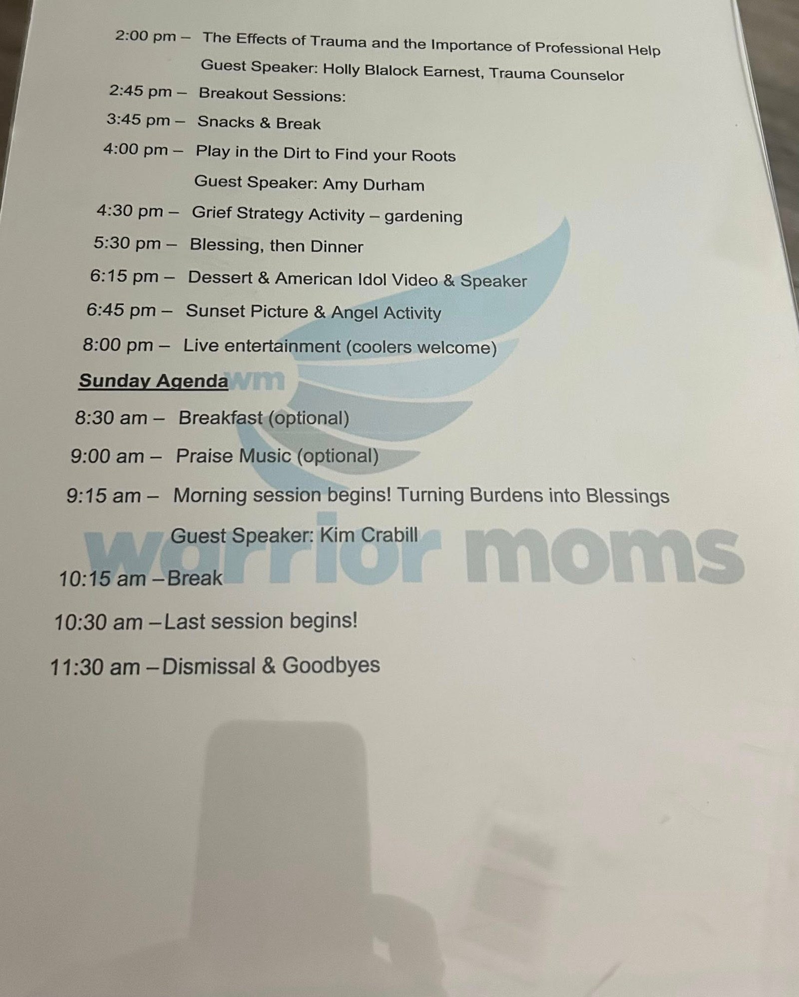 What a true Blessing this retreat was! Inspiring, uplifting & filled with so many grieving WARRIOR MOMS just like us …just trying to navigate this life one day at a time without our precious children. I’m thankful for the friendships & connections made